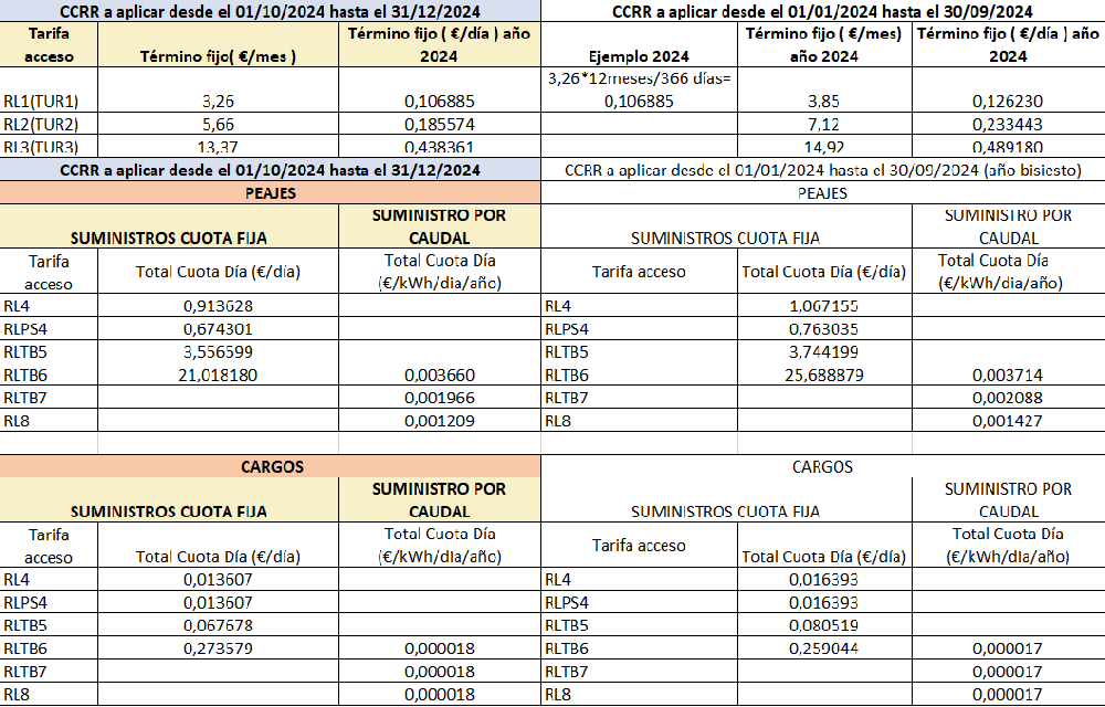 **CCRR a aplicar desde el 01/10/2023-indicados en línea adicional en factura**
