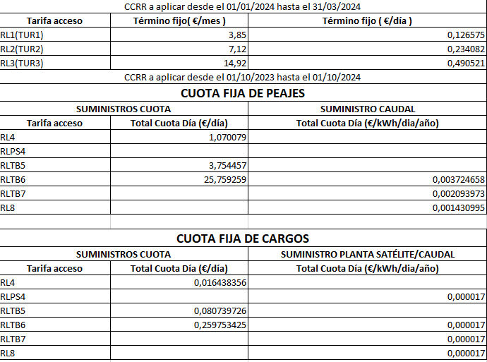 **CCRR a aplicar desde el 01/04/2023-indicados en línea adicional en factura**