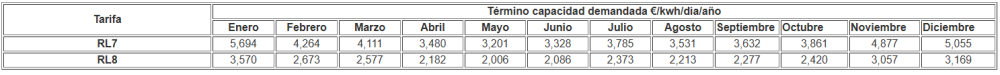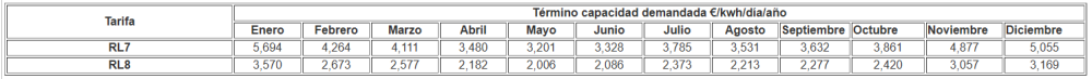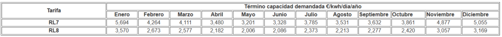 Término de capacidad demandada= Precio de capacidad demandada (€/kwh/día)/año x Volumen mensual de capacidad demandada (suma diaria de kwh/día consumidos por encima de la capacidad contratada durante todo el mes):